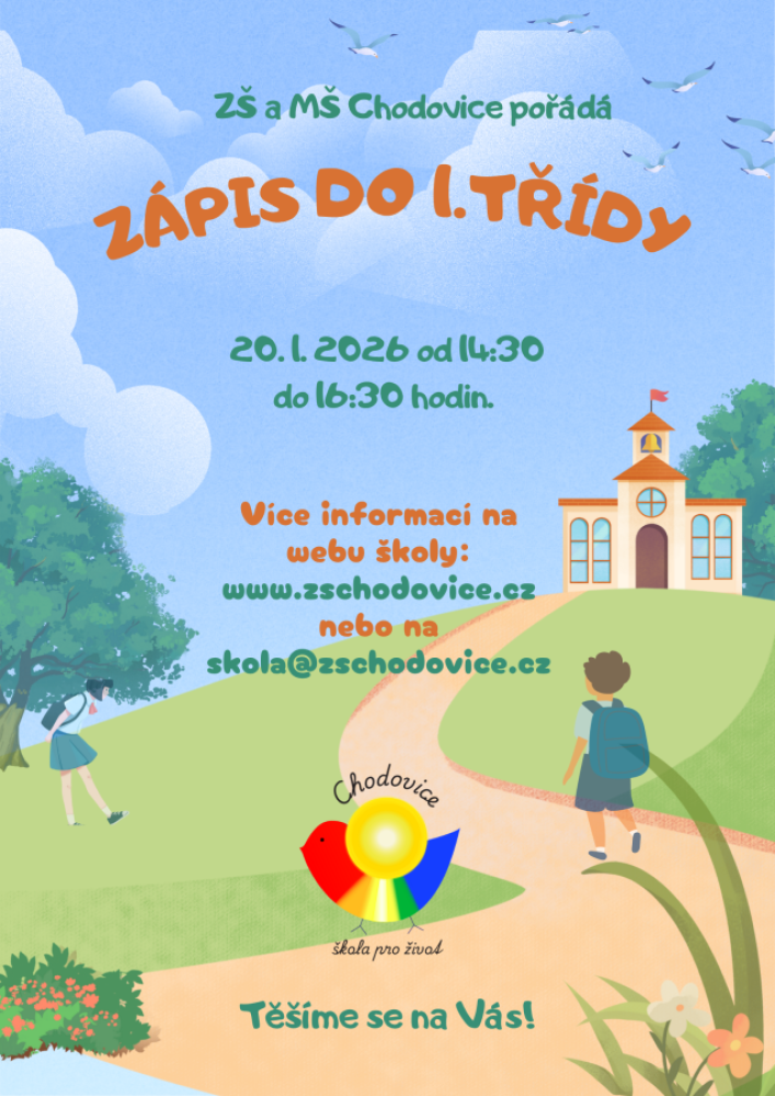 Zápis žáků do 1. ročníku pro školní rok 2026/2027 proběhne od 15. ledna 2026 do 15. února 2026.